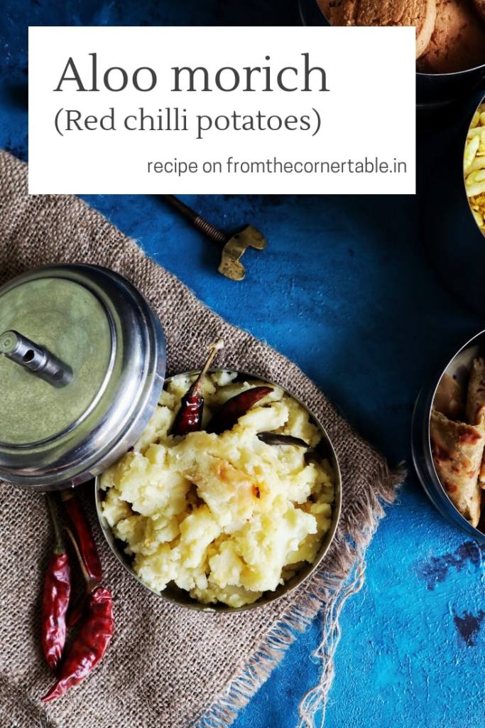 Today’s not-so-pretty and simple potato dish is a throwback to the tiffin that Maa would cook and pack for us. The food had to be healthy, nonmessy, tasty and remain unspoiled for more than 24 hours sans refrigerator. Enter the picture, the aloo morich which is potatoes mashed and cooked in chilli flavoured oil, seasoned with salt.