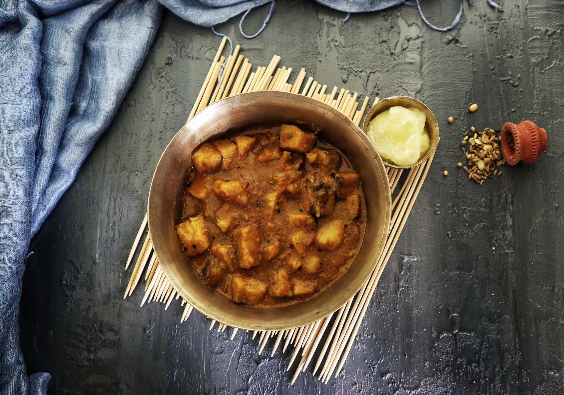 A traditional Bengali winter vegetable stew flavoured with dried lentil dumplings that’s flavourful and gut friendly. Just like the humble