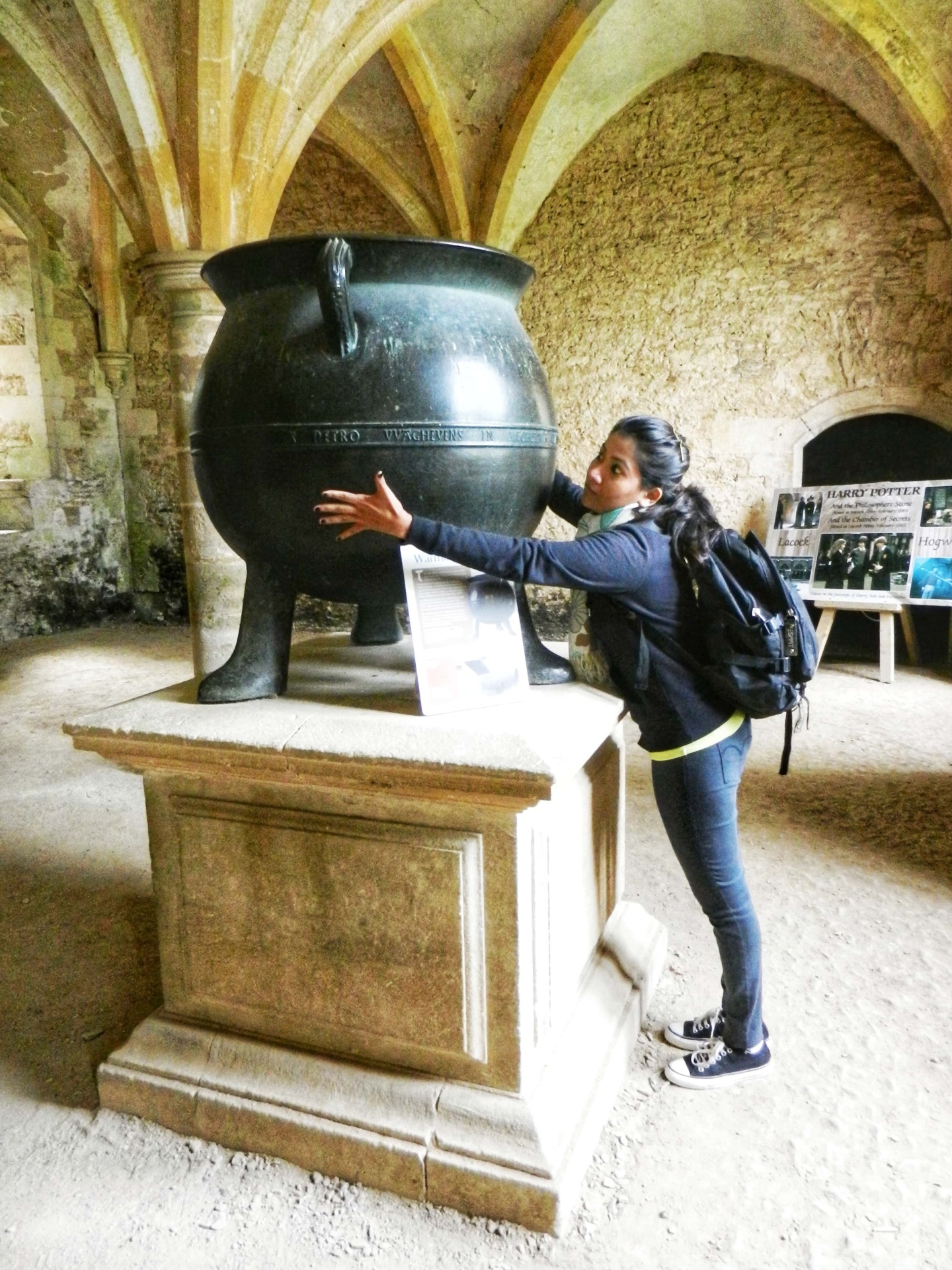 There is a massive cauldron in one of the cloister rooms but unfortunately, the vessel is not a prop used in the movie.