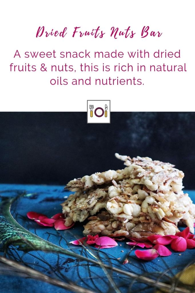 On that note, here’s the recipe for mewe ka paag. I’ve made the paag using a selection of dried fruits/nuts/seeds of my preference. Feel free to try different combinations. Don’t skimp on the use of ghee or sugar syrup. You can try replacing sugar with jaggery and use the same method to make health bars to tide you through snack cravings.